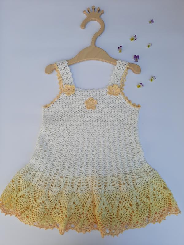 Сарафан для дівчаток на 2 - 3 роки. Ручна в'язка гачком. Склад ниток 100% бавовна. Виміри за запитом.