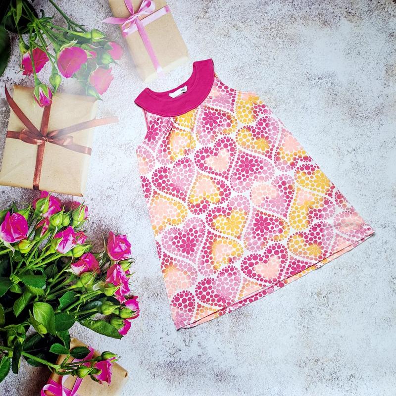 Платье прямого кроя в сердечки от НМ на 4-6 лет Ширы 34 Длж 57