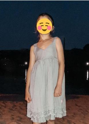 Состояние идеальное. 9-10 лет (134-140 см) 55% лен, 45% хлопок подкладка 100% хлопок - длина 75 см (бретельки регулируются)