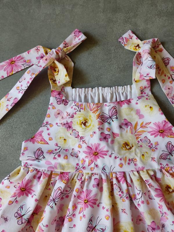 Ніжний сарафан для незрівнянних модниць. -Тканина з натуральної бавовни забезпечить комфорт навіть в жарку погоду. -Модель присборена на талії з об'ємними оборками на спідниці- виглядає дуже стильно. -Зручні широки брителі можна перезав' язувати по мірі зростання малечі, що дозволить носити сарафан кілька сезонів. -Відсутність застібок допомагає швидко одягнути і зняти сарафан. На спинці еластична резинка для додаткового комфорту підчас рухів. Розмір 86-98 на 1,5-3роки Інші розміри і кольри можу виконати на замовлення. Термін 3-5 днів. Пересилаю. Пишіть