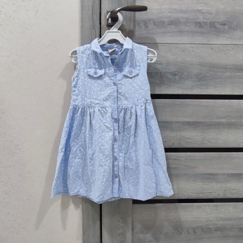 довжина 55 см.під пахвами 29 талія 32.в ідеальному стані.ще до нього є поясок білий .на 6-7 років.колір ніжно блакитний і білі квіточки .матеріал льон з хлопком