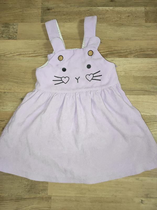 Сарафан на дівчинку. Колір насичений бузковий, як на третьому фото. Рубчик щільний, не тягнеться. Під сарафан вдягається светр або футболка. Розмір 110. Пувички розтібаються. Виробник Suzie. Заміри шлейки 29см, довжині від пувички 44 см, груди 28 см, пояс 29 см, ширина юбки знизу 57 см.Склад бавовна 60%, поліестер 40%