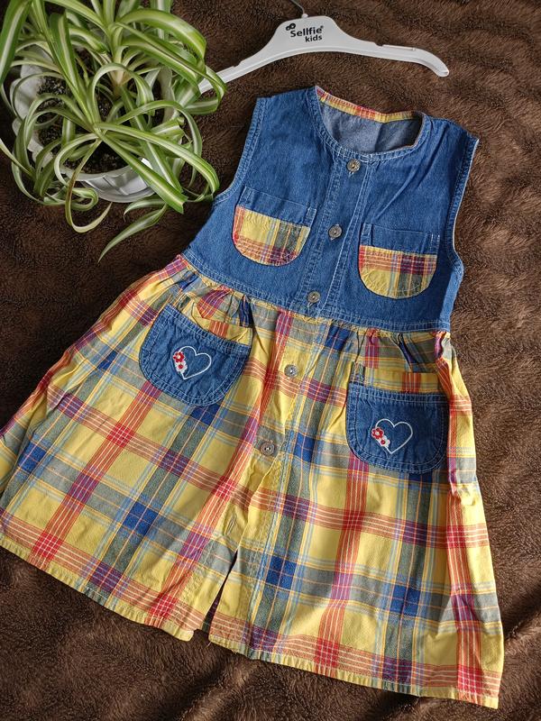 Платье джинсовое Состояние хорошее, нет последней пуговки внизу платья Длина 56 см ПОГ 31 см талия 31 см от плеча до плеча 24 см