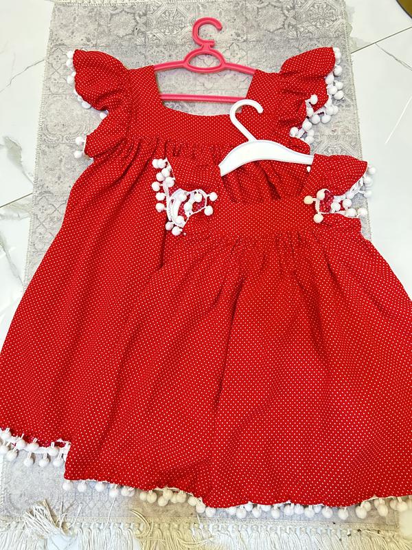 Детские платья, красные в белый горошек с отделкой, на рост 92-110. Качественная хлопковая ткань