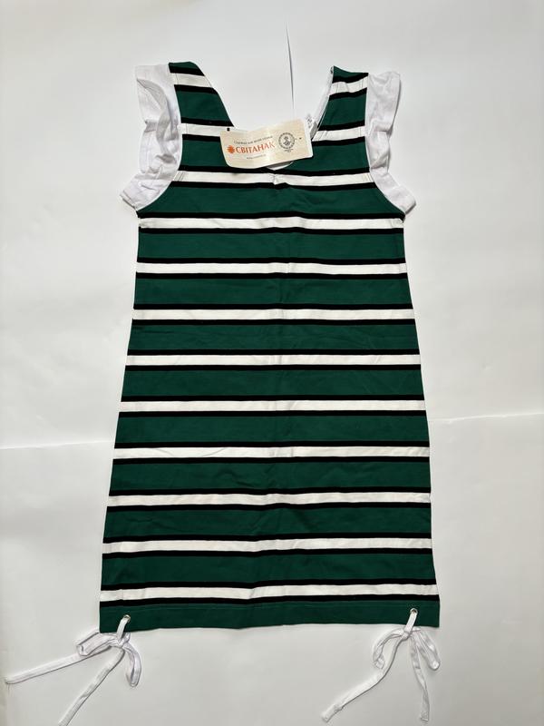 - колір: у смужку - розмір: 9-10 років(зріст 134-140 см) - хлопок 97 % - заміри: груди 72 см; довжина 70 см