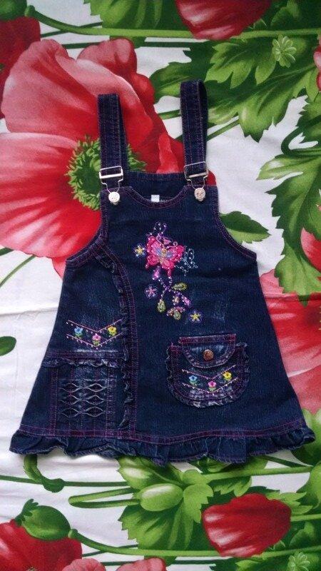 Джинсовий сарафан для дівчинки 3-5 роки,в ідеальному стані. Максимальна довжина-60 см,можна робити коротше,ширина -31 см Пересилаю.