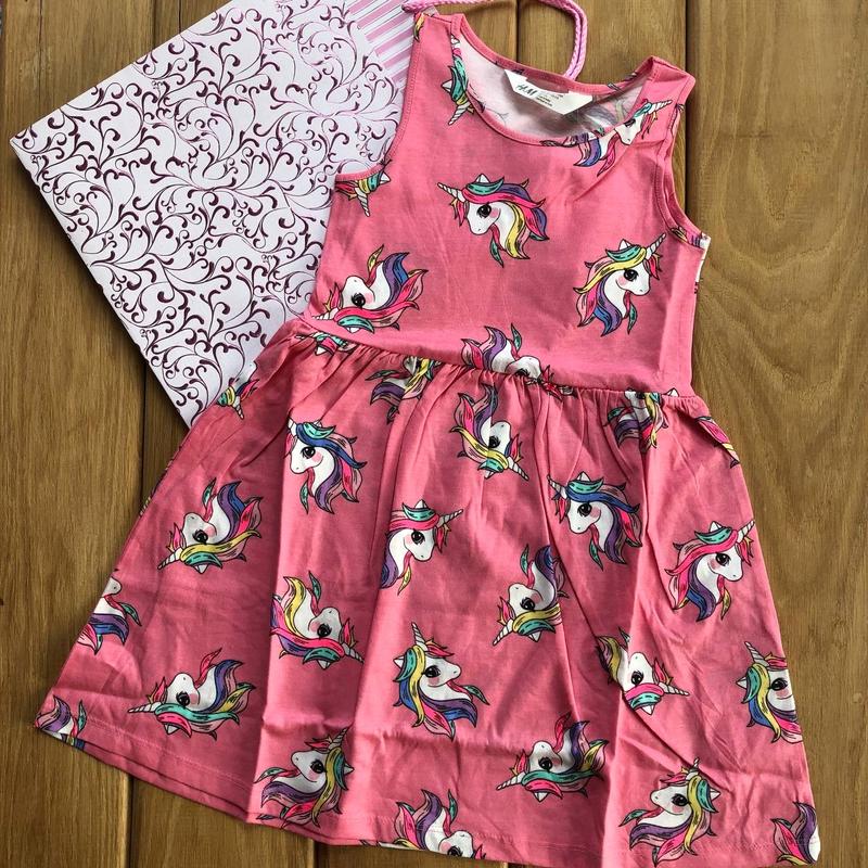 ✔В наявності✔ Платтячко H&M з хлопкового джерсі з малюнком . Зібраний шов по талії , легке, зручне, якісне 💖 В наявності на вік 4-6р 💖 Заміри на 4-6р рожевого пот 29 , ПОГ 28см, довжина 58см