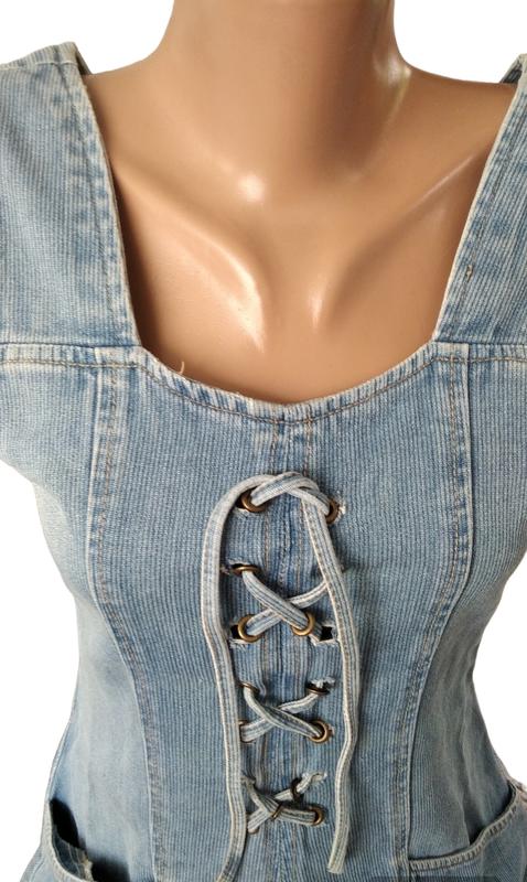 Джинсовий сарафан. Заміри: НОГ-40 піт — 36 поб-50 довжина-77