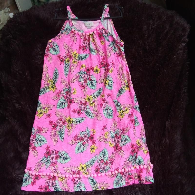Гарний яскравий сарафанчик,або можна як тунічку,не жаркий, .Дуже красивий та стильний,з актуальним принтомПідійде до 44 розміру.Довжина 70 см, полуоб'єм під руками 40 см,, розширюється до низу, напівоб'єм в районі стегон 47см бавовна 100%