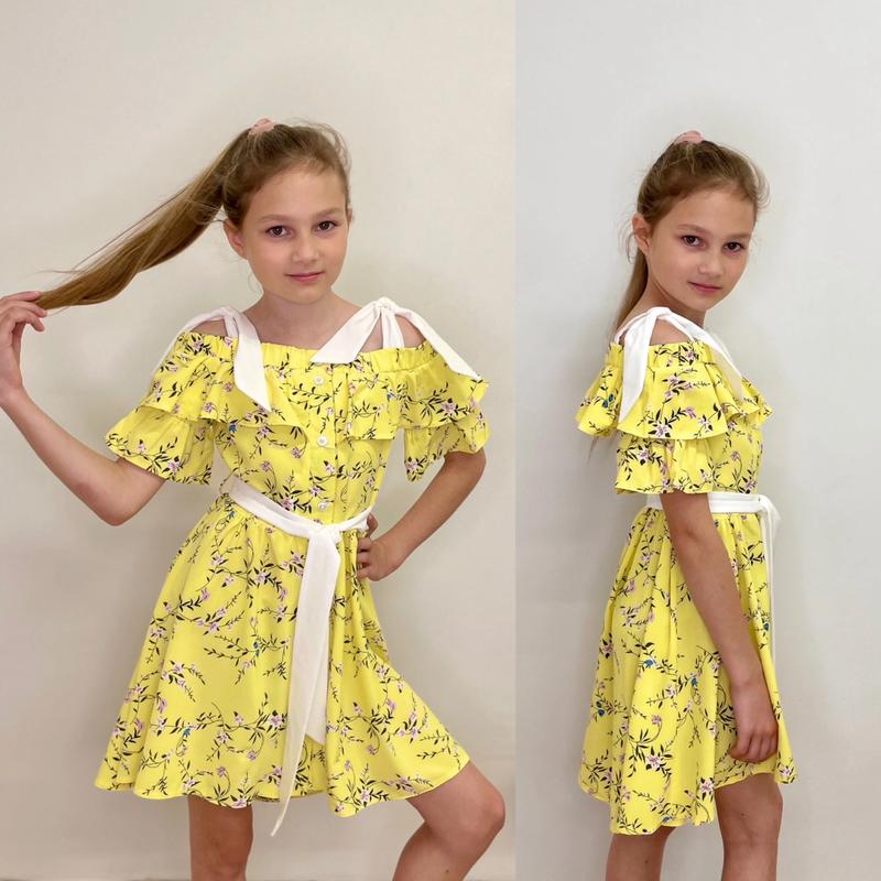 Таня арт 5238 Легкий літній сарафан тканина софт , прикрашен рюшей , по переду застібається на гудзики , поясок у комплекті (знімається) РЕКОМЕНДУЮ!!!! зріст/довж.( по передній планці, без бретелек)/пог похибка+-2см 134/60/36-3шт 140/64/38-3шт 146/66/40-1шт 152/67/42-1шт