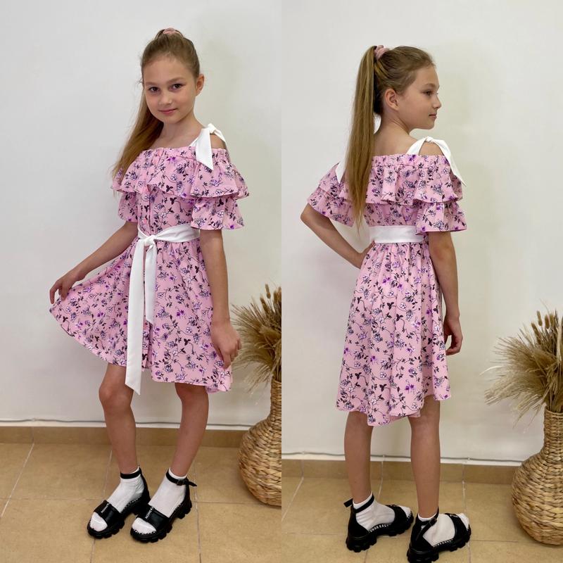 Таня арт 5239 Легкий летний сарафан ткань софт, украшенная рюшей, по переду застегивается на пуговицы, поясок в комплекте (снимается) РЕКОМЕНДУЮ!!! рост/длин.( по передней планке, без бретелек)/пог похибка+-2см 134/60/36-3шт 140/64/38-3шт 146/66/40-2шт 152/67/42-2шт