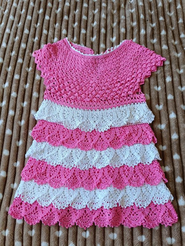 Сарафан в'язаний крючком, з спеціальних ниток рослинного походження, передбачених на літній сезон. Ручна робота. Позаду є гудзики для зручності одягання. Заміри є на фото. Підійде на зріст 98-104.