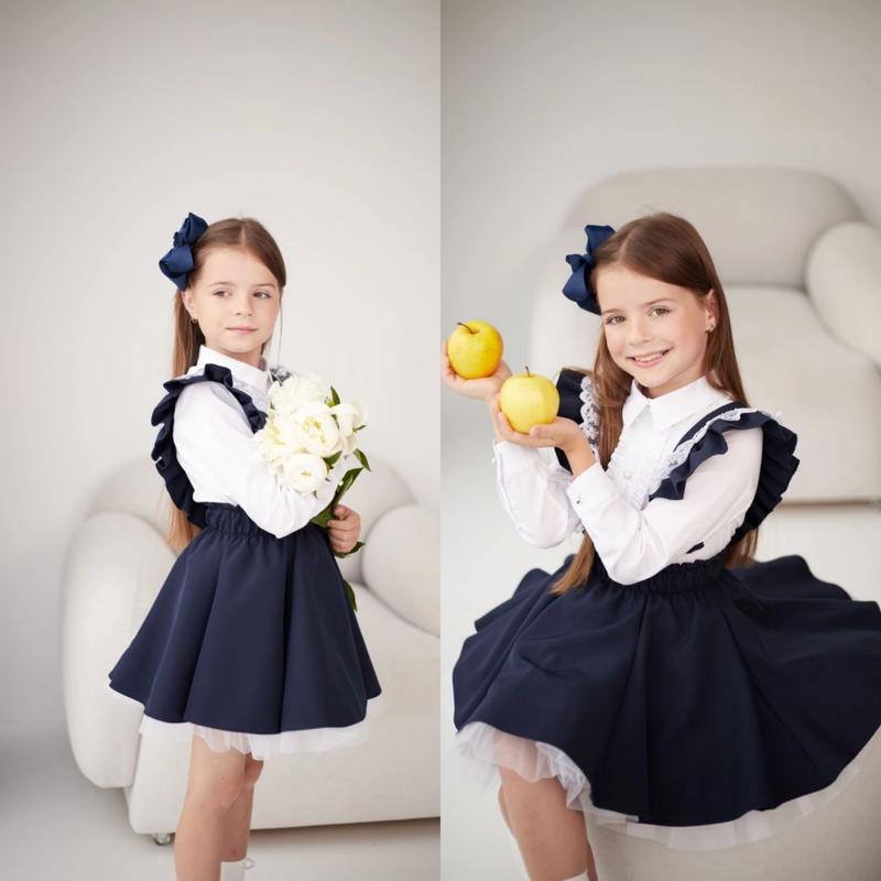 саш ЦВЕТ ТЕМНО-СиНИЙ Сарафан «Дежавю» 🧶Турецкий Котон «Тиар» клетка. 🧶Костюмный Тиар, однотонный. Легкая и невесомая структура ткани, практичная и неприхотливая по уходу ✔️Юбка: 6- ты клинками солнцеклеш, пояс собран под резинку, регулирующую объем талии. ✔️В боковых швах юбочки имеются функциональные карманы ✔️Подкладка юбочки : батист + по низу подкладки вшит белый Фатин, что придает изделию большее великолепие ✔️Бретельки снимаются ( можно носить отдельно сарафаном или юбочка ) ✔️Бретели застегиваются на потайных пуговицах, а также регулируются по высоте - благодаря дополнительным петелькам ✔️На бретельках вшитые воланы из основной ткани + пришитые белые кружева ✔️Качественный пошив ✔️Добротна структура тканини ✔️Непревзойденная модель для настоящей школьницы ✔️Размеры полномерные Замеры: 116р Длина юбки без фатина 32 см Длина юбки с фатином 35см Длина от плеча до низа без фатина 54 см Длина от плеча с фатином 57 см 122р Длина юбки без фатина 34 см Длина юбки с фатином 37см Длина от плеча до низа без фатина 57 см Длина от плеча с фатином 60 см