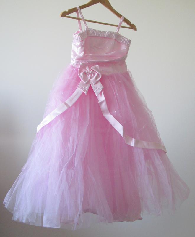 Продам нарядное детское платье розового цвета. На возраст 10-12 лет. Длина юбки от талии до низа 73 см, полная длина платья с учетом бретелек 110 см, полуобхват груди - 35 см. Шнуровка на спинке регулирует ширину платья. Прекрасное состояние. Возможен прокат.