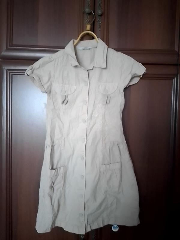 сарафан тканини плашовка, довжина77 см,п.о грудей 55 п.о.талії 57 см застібки заклепки.Немає пояса