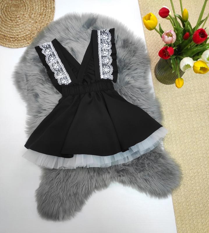 КОЛІР ЧОРНИЙ Сарафан «Дежавю» Турецький Котон «Тіар» клітинка. Костюмний Тіар, однотонний. Легка та невагома структура тканини, практична та невибаглива по догляду ✔️Спідничка: 6- ти клинцями сонцекльош, пояс зібраний під резинку, що регулює об’єм талії. ✔️В бічних швах спіднички є функціональні кишені ✔️Підкладка спіднички : батист + по низу підкладки вшитий білий Фатин, що надає виробу більшої пишності ✔️Бретельки знімаються ( можна носити окремо сарафаном або спідничка ) ✔️Бретельки застібаються на потаємних ґудзиках, а також регулюються по висоті - завдяки додатковим петелькам ✔️На бретельках вшиті волани з основної тканини + пришиті білі мережива ✔️Якісне пошиття ✔️Добротна структура тканини ✔️Неперевершена модель для справжньої школярочки ✔️Розміри повномірні Заміри: 122р Довжина спідниці без фатину 34 см Довжина спідниці з фатином 37см Довжина від плеча до низу без фатину 57 см Довжина від плеча з фатином 60 см 128см Довжина спідниці без фатину 36 см Довжина спідниці з фатином 40 см Довжина від плеча до низу без фатину 60 см Довжина від плеча з фатином 65 см