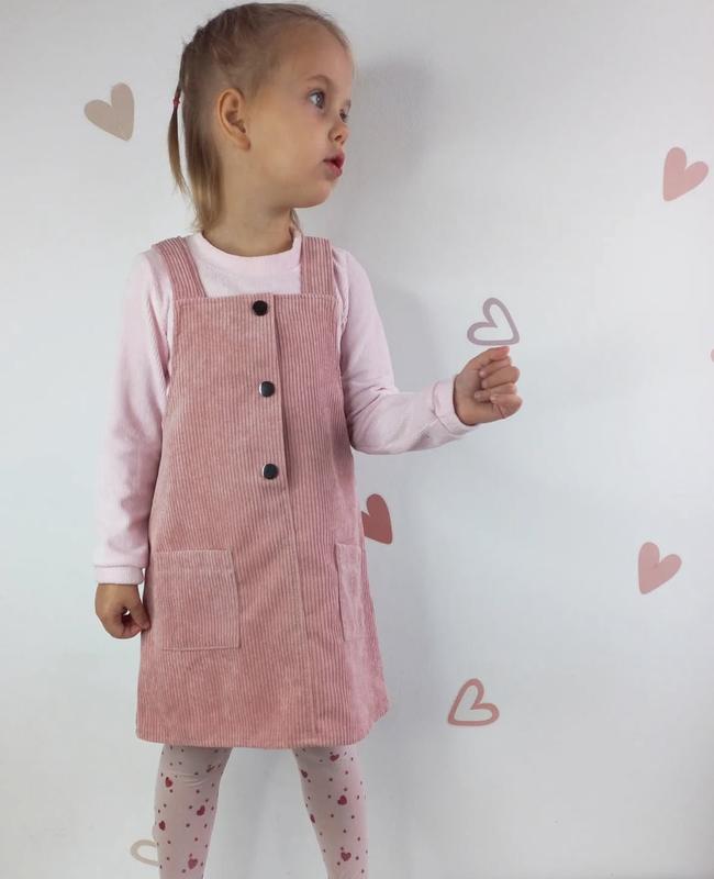 Вельветовий сарафан. Мастхев у гардеробі дівчинки. Зручний, підійде для садочка школи та на святкові події, якщо зкомбінувати з блузою чи сорочкою. Всесезон: осінь, зима, весна. Не втрачає кольору, не дає усадку. Повномірні, розмір відповідає росту.