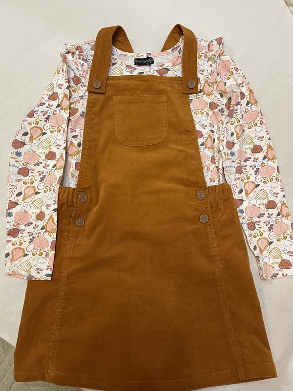 Американский, хорошего качества, сарафан- вельвет, стрейчевый, по бокам резиночка, по талии 36см, длина юбочки 35см, длина сарафана 71см, Темно горчичного цвета,Кофтика-стречья, на плечах рюши, рукав 49см, длина 47см, Стан идеален, одевался 2-3 раза, 7/8/9р,