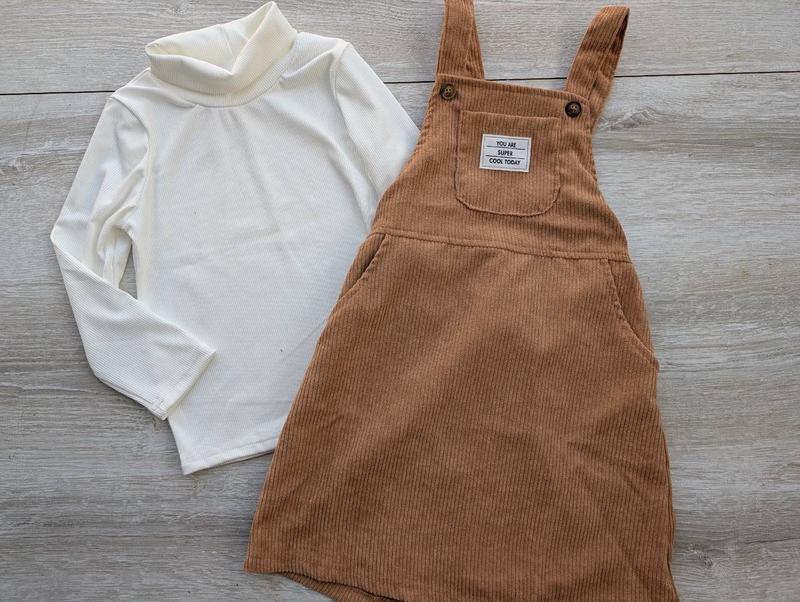 вельветовий сарафан ззаду пояс на резинці є кишені гольф рубчик ЗАМІРИ гольф (довжина /ширина по грудях /рукав від плеча ) сарафан (довжина вказана максимальна , можна зробити на пару см. коротше /ширина поясу) 5р г. (42/ 30/ 36) с. (65\ 27) 6р г. (44/33/40) с. (70\28) 7р г. (46/35/44) с. (75\30)