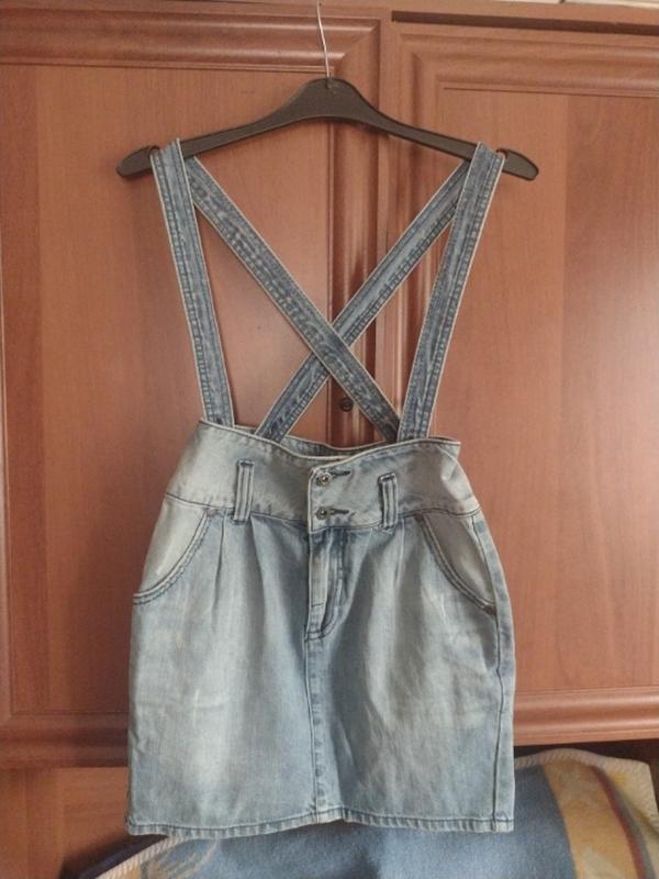 Джинсовый сарафан юпка. Лямки регулируются на пуговицы в середине. Есть небольшой нюанс на фото сзади, где распылка видна можно исправить.