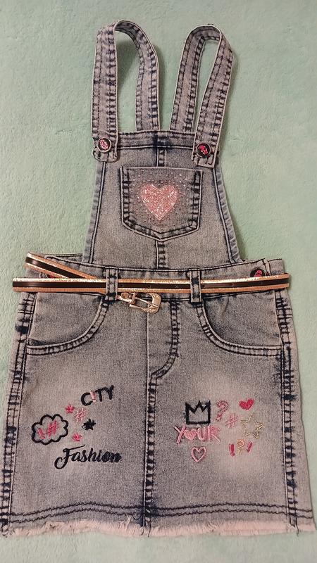 На дівчинку 3-4роки. Стан дуже добрий, без недоліків. Заміри: пояс-28см, довжина юбки-28см, довжина з кишенькою-43см, довжина брителі-32см(регулюється)