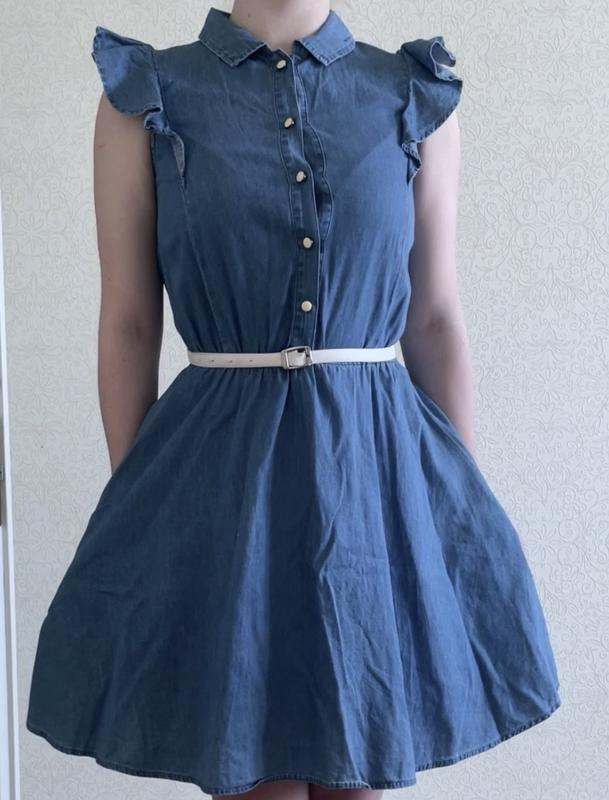 Легка літня сукня з воланами на плечах З легкої джинсової тканини На зріст 158-164 ОГ 88 ОТ 68 ОБ 92 Довжина спідниці від талії 47 см