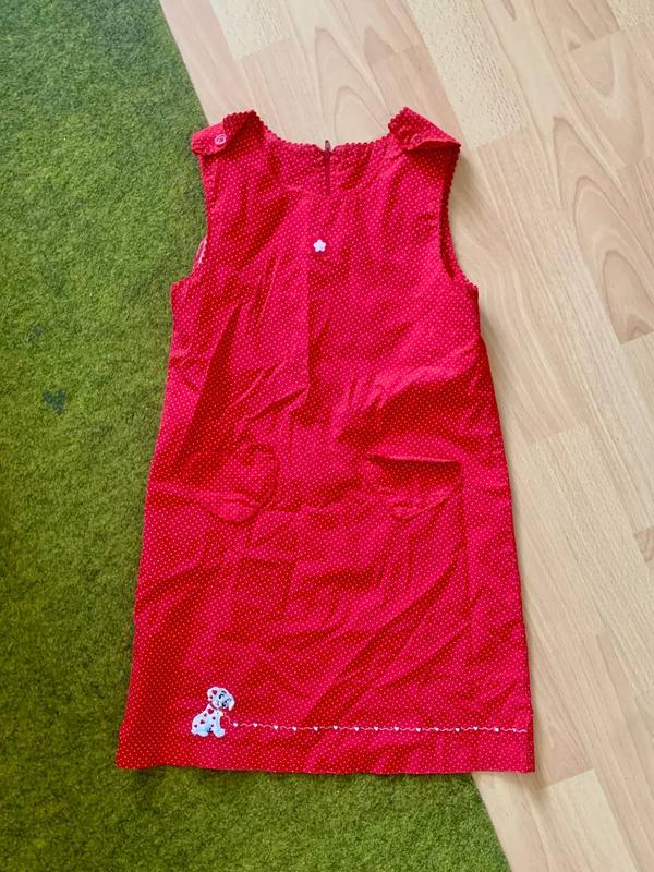 Сарафан дитячий, червоного кольору в дрібний горошок. На 7-8 років