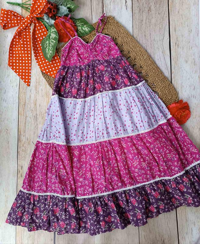 79💥красивый пышный сарафан макси для девочки, состояние идеальное без следов носки, цвета яркие, натуральная ткань 📏8/9 лет, длина 99, пог 30