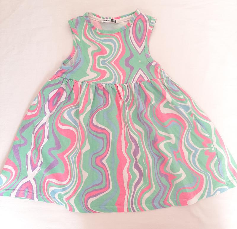 100% котон, щільна тканина як футболка. Стан ідеальний, за виключенням 1 крихітної не помітної плямки (останнє фото, виділила червоним). Заміри довжина 48 см пог 27 см