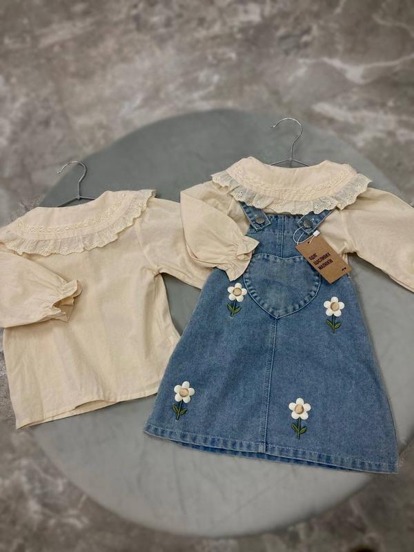 ✨Джинсовий сарафан та блузка — це стильне поєднання для будь-якої модниці. ✨Ідеально комбінується як з класичними туфлями, так і з кросівками для більш спортивного вигляду. ✨Блузка: 580 грн (110) ✨Джинсовий сарафан: 620 грн (90,110)