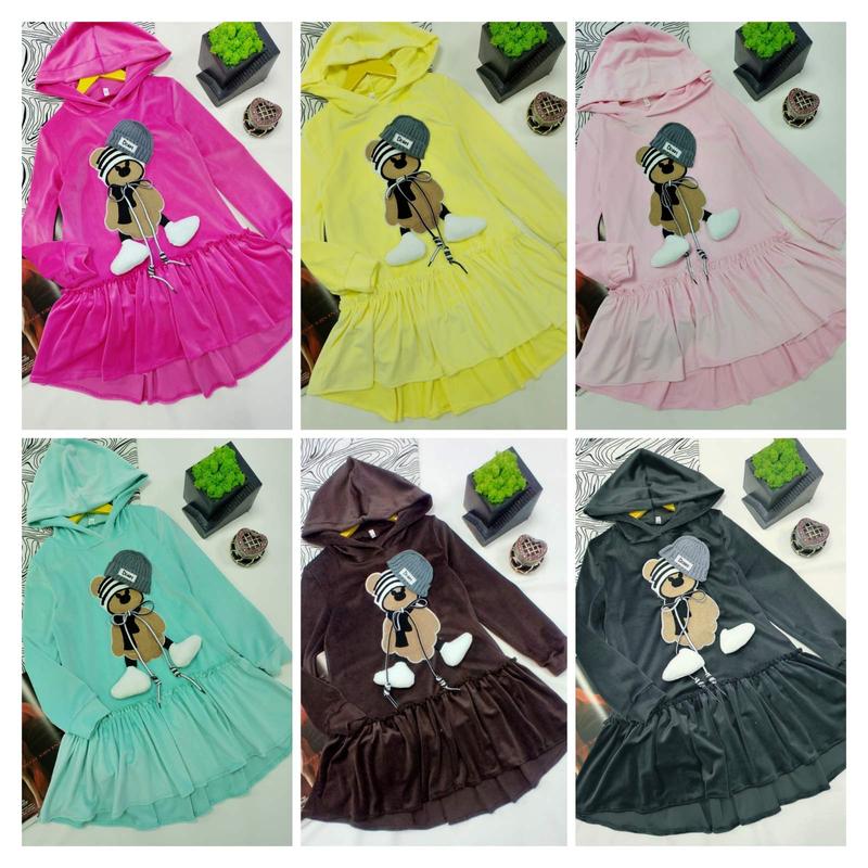 Стильне круте плаття РЕКОМЕНДУЄМО! Сукня вільного крою підійде на будь який тип фігури. Тканина: королівський плюшевий велюр на бавовняній основні. Аплікація - іграшка ведмедик пришитий. заміри+-1-2см:. 💖р116- дл.від плеча 66/+спинка 6см/ПОГ 29см,рукав від плеча 42 см 💖р122- дл.від плеча 69/+спинка 6см/ПОГ 31см,рукав від плеча 44 см 💖р128- дл.від плеча 62/+спинка 6см/ПОГ 33см,рукав від плеча 46 см 💖р134- дл.від плеча 64/+спинка 6см/ПОГ 35см,рукав від плеча 48 см 💖р.140- довжина від плеча 66 см / + спинка 6см / ПОГ 37 см, рукав від плеча 51 см 💖р.146- довжина від плеча 69 см / + спинка 6см / ПОГ 38 см, рукав від плеча 52 см 💖р.152- довжина від плеча 70 см / + спинка 6см / ПОГ 40 см, рукав від плеча 54 см 💖р.158- довжина від плеча 74 см / + спинка 7см / ПОГ 42 см, рукав від плеча 57 см 💖р.164- довжина від плеча 76 см / + спинка 7см / ПОГ 43 см, рукав від плеча 57 см