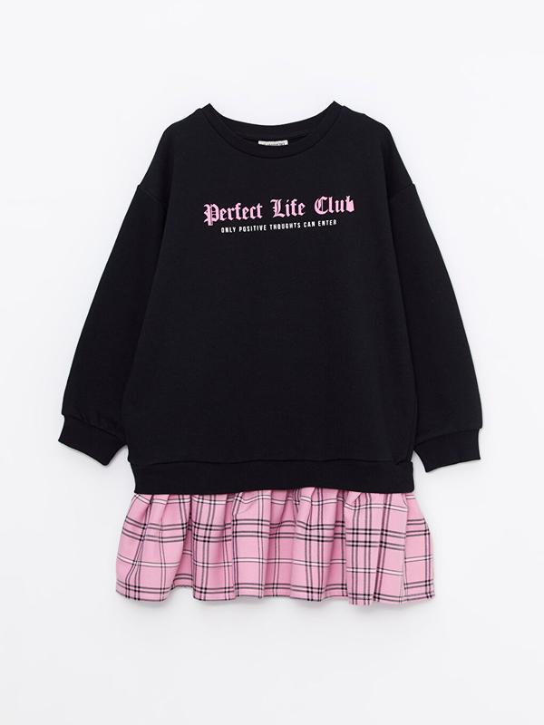 LC WAIKIKI Сукня з круглим вирізом, з принтом, з довгим рукавом, для дівчаток. Розмір: 7-8 років (122-128см) Тканина: бавовна, поліестер.
