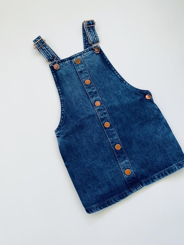 Джинсовий базовий сарафан для дівчинки в ідеальному стані без недоліків Цупкий джинс Довжина 50 - 55 см В грудях 30 см Стегна 36 см