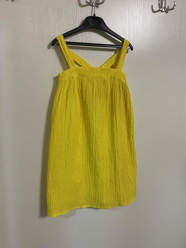 Дуже красивий літній сарафан для дівчинки. Розмір 6-7; зріст 116-122. Довжини по спинці від плеча 65,5; ширина під руками 29. Тканина жатка