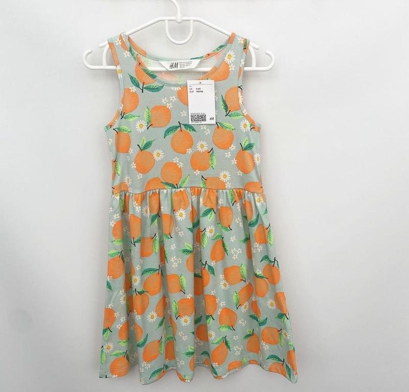 Плаття сарафан h&m для дівчинки Яскравий літній принт 🍊 Чудовий варіант в спеку 🏷️ бавовна 📐Розмір-2-4р(104 см) 📐4-6р(116 см) 📐6-8р(128 см)