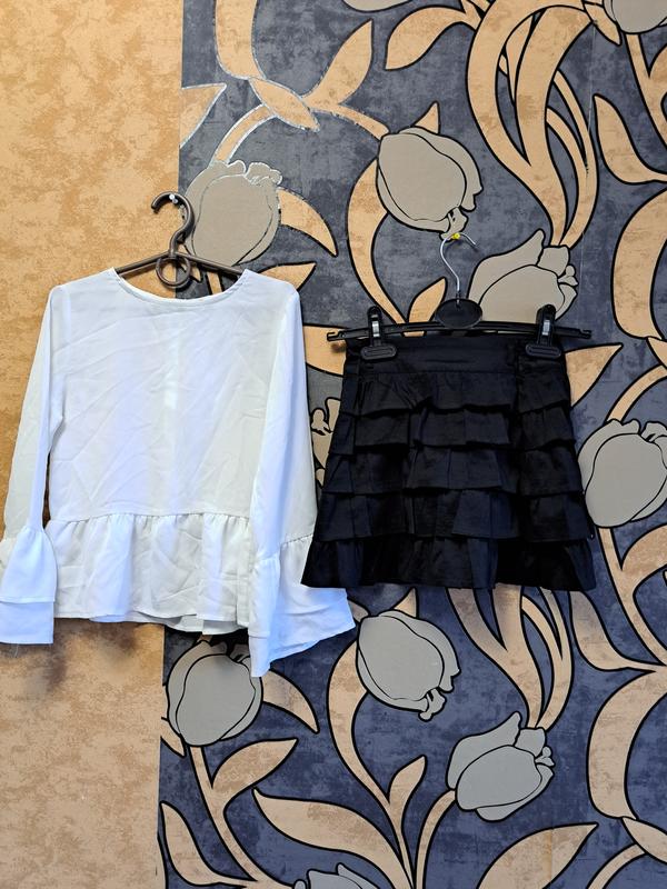 Комплект Блузка с юбкой 128-134 в хорошем состоянии без дефектов. Блузка длина 45 ПОГ 38 Юбка длина 32 ПОТ 29 сбоку на змейке