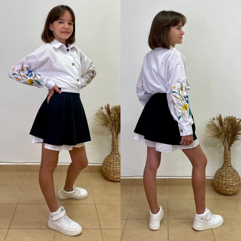 💝Красивый костюм: рубашка с вышивкой и юбка-шорты 🏷Размеры: 140-158 🪡Ткань: хлопок и тиар. Юбка сзади в талии под резинку, супер качество 📐Замеры: рост/длин.рубашки/пог/рукав от горловины/длинны/пот похибка+-2см 140/46/45/59/32/24 146/48/46/61/34/26 152/50/47/65/36/27 158/53/48/66/39/28