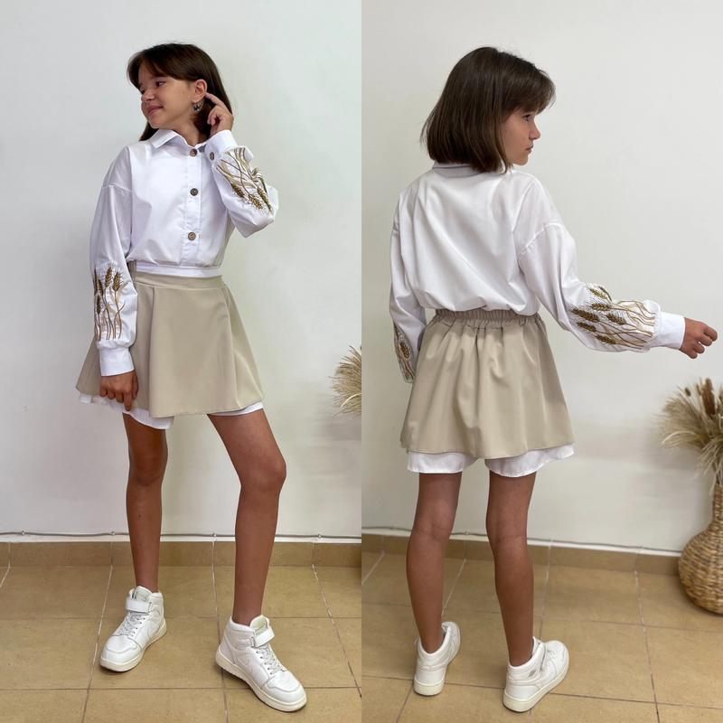 арт 5270 Красивый костюм рубашка с вышивкой и юбка-шорты ткань хлопок и тиар Юбка сзади в талии под резинку супер качество рост/длин.рубашки/пог/рукав от горловины/длинны/пот похибка+-2см 140/46/45/59/32/24-5шт 146/48/46/61/34/26-4шт 152/50/47/65/36/27-5шт 158/53/48/66/39/28-5шт