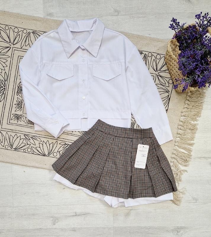 😍НОВИНКА 🥰 Неймовірно красивий костюмчик Тканина сорочки котон,застібається на гудзики Шорти спідничка котон,в поясі на резинці ЯКІСТЬ ЧУДОВА, РЕКОМЕНДУЮ 💐 На дітках сидить просто фантастично красиво🥰 Ціна 920 грн блуза довж/рукав від горловини/пог/шорти-спідничка довж/пояс 128р-40/55/43/31/25 немає 134р-41/58/45/32/26 140р-42/60/46/33/27 146р-43/61/47/34/28 152р-45/63/49/36/29 +-2 см