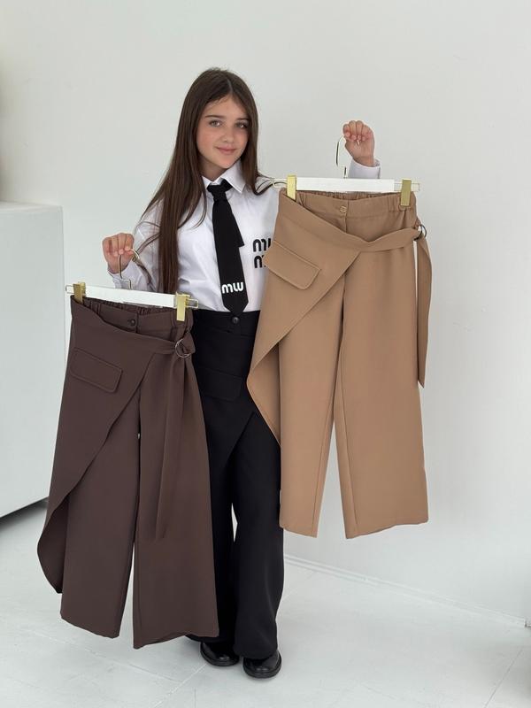 Штани Тканина-костюмка преміум якості Стильна модель з асиметричним передом, що підкреслює талію та додає легкості образу. Зручна посадка,пояс-зав’язка для ідеальної фіксації. Підходять як для щоденного, так і для святкового стилю. рекомендую 🔥 заміри по прибуттю повномірні ЧОРНІ 134-1шт 140-1шт 146-1шт 152-1шт 158-1шт ШОКОЛАД 140-1шт 146-1шт 152-1шт 158-1шт БЄЖ 134-1шт 140-1шт 146-1шт 152-1шт 158-1шт 58