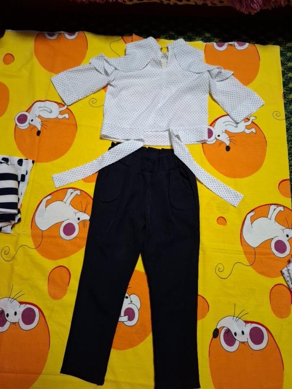 дуже гарненький костюмчик в ідеальному стані штанці укорочені блузочка завозиться на бантик ззаду плечі відкриті вдалий пару разів