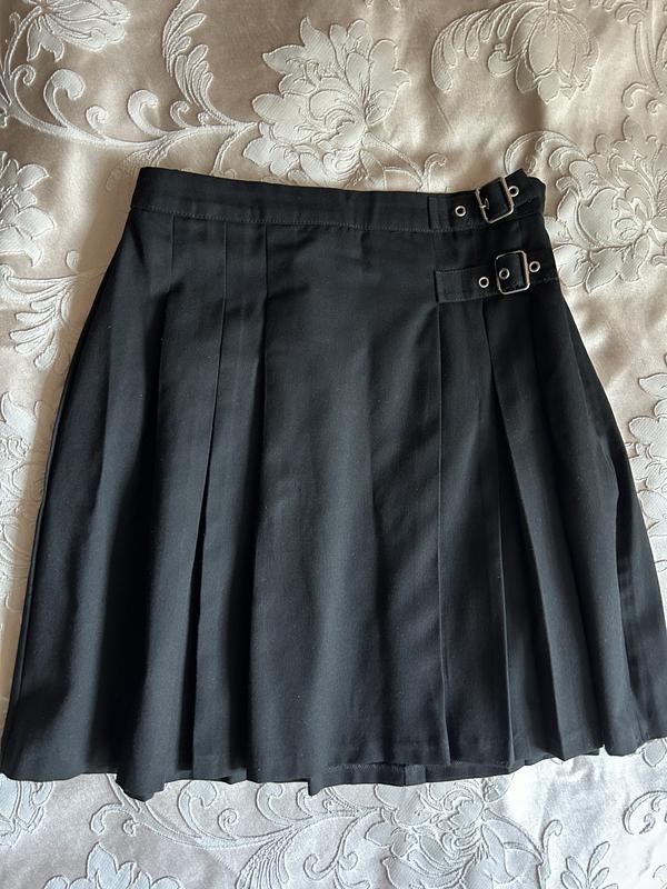 Продам нашу спідничку Next чорного кольору на зріст 140см. Склад тканини:35%поліестер,35%віскоза. Стан нової,так як одягали лише пару раз. Має регулятори обʼєму в поясі і блискавку-застібку збоку. Повернення і обміну немає. Відправлю УП або НП.