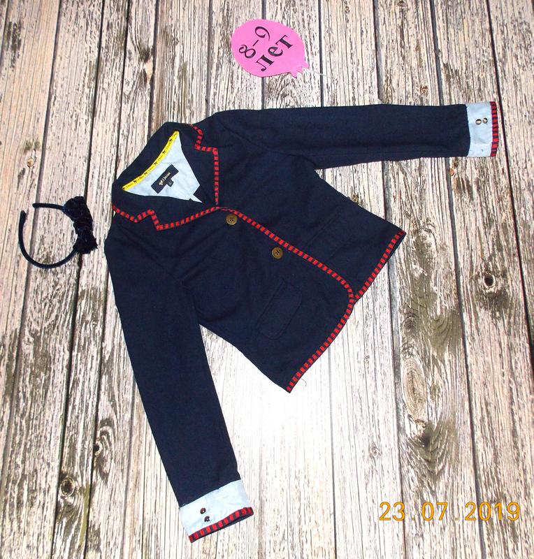 Шкільний піджак J Джинси для дівчинки 8-9 років,128-134 см Б/у, стан ідеальний Склад-віскоза,бавовна,поліестер Довжина від плеча до низу-44.5 см Ширина між пахвами-36 см Довжина рукава від плеча-51 см,блакитну вставку можна підвернути ,буде 3/4 рукава Ширина плеча-8 см Ширина між плечовими швами-31 см, Напівобхват в поясі-34 см Відправлю в будь-яке місто