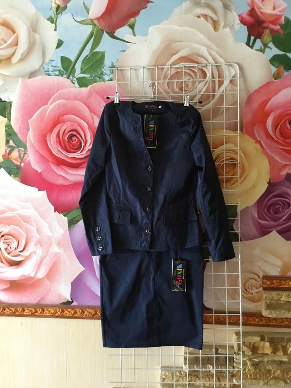 Дуже гарний шкільний костюм для дівчинки, відмінної якості, виробництва України, торгова марка Люксик, ідеально підходить для школи і осені. Костюм складається з жакета і спідниці, спідниця йде пряма, з розрізом ззаду. Новий з біркою, ціна знижена, є розмір на ріст 146,152,158. Шикарний костюм.