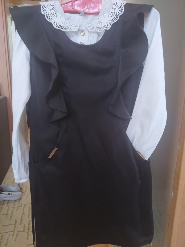 Продам шкільний комплект: сарафан і блуза. Якість дуже класна. Розмір блузи вказаний на фото,сарафан 122. Має бокові кармани,додатковий замочок збоку під рукою та знизу красиві замочки. Можна окремо. Перешлю НП або Укрпоштою Додаткові заміри за запитом.