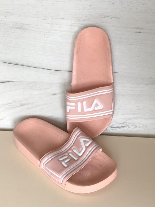 Ніжні шльопанці від Fila в пудрово-рожевому кольорі. Добре виглядають на ніжці, зручні. Розмір 31, краще орієнтуватися на заміри, устілка 19*7см. Стан практично ідеальний, є сліди носки на підошві.