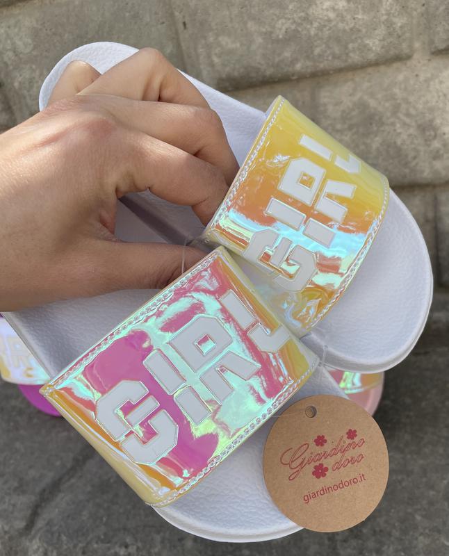 Стильные шлепанцы для девочек Легкая подошва Верх с галограммой Внутри текстильная подкладка Малиновые : 30-19,7 см 32-21 см 34-22 см 35-23 см Розовые: 31-20,5 см 32-21 см 33-21,5 см 35-23 см Білі: 30-20,5 см 32-21 см 33-21,5 см 34-22 см Стелька от края до края
