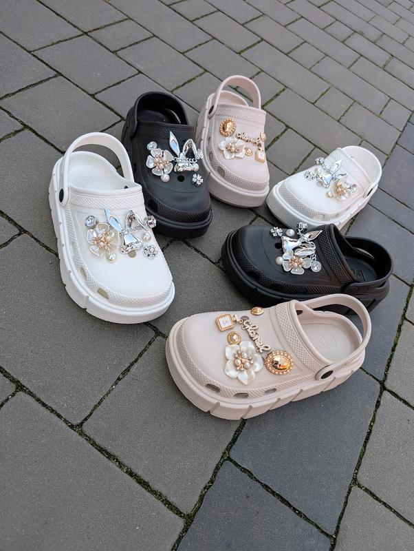 Невероятно стильные кроксы для девушек на трендовой подошве Украшения снимаются. Очень легкие и удобные. Выглядят мега стильно. Замеры сделаны до бортика. Размеры: Черные✅ 36р-22,5см 38р-24см-2шт 39р-24,5см 40р-25см ========= Белые✅ 36р-22,5см 37р-23см 38р-24см-2шт 39р-24,5см 40р-25см ========== Беж✅ 36р-22,5см 37р-23см 38р-24см-2шт 39р-24,5см 40р-25см ✅✅Цена