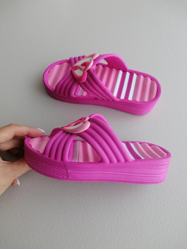 Дитячі шльопанці р.30 для дівчинки. Виробник Туреччина. Нові, переросли і не встигли одягнути. По устілці повністю 19,5, основна частина 19см.