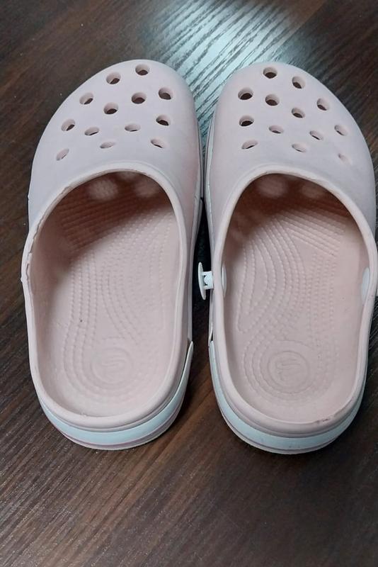 Вживані, без хлястиків і по боках потріскалась декорвтивна стрічка(на фото), колір бежево-рожевий. Устілка від краю до краю 17см.